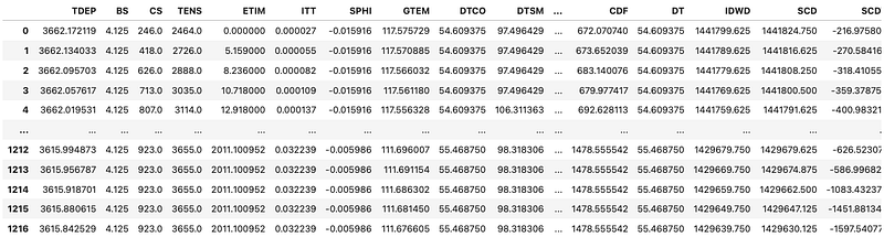 Similar to what we covered in the earlier section on loading multiple LAS files, we iterate over a directory, read each .las file, add a WELL column from the header, and concatenate all the dataframes together.