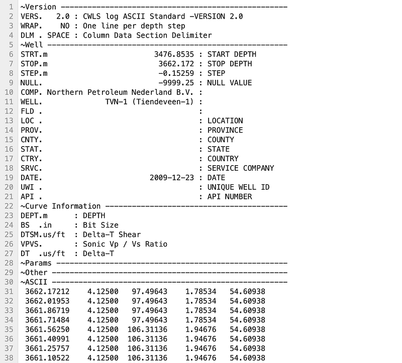The name comes from the Log ASCII Standard. That last bit matters: this isn’t a binary or fancy proprietary format. It’s raw text, which makes it human readable, scriptable, and durable.