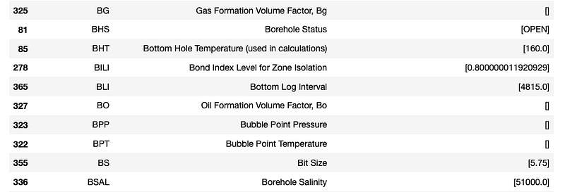 - Sometimes more detailed well metadata including information about mud types and processing parameters