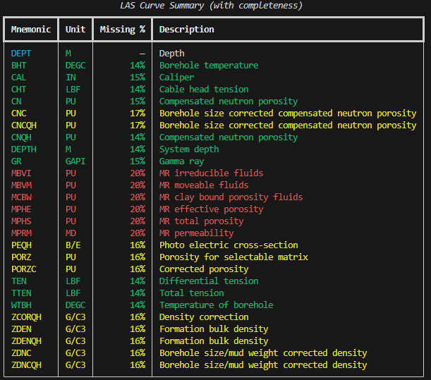 That doesn’t make it perfect, but it just makes it practical. And that’s why libraries like lasio exist: to bridge between this old-school format and modern Python workflows.
