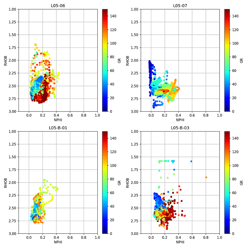 When working with multiple wells, the process becomes more involved. We need to load multiple LAS files and formation CSVs, organise the formation data by well, and then apply a merge function that accounts for which well each row belongs to.